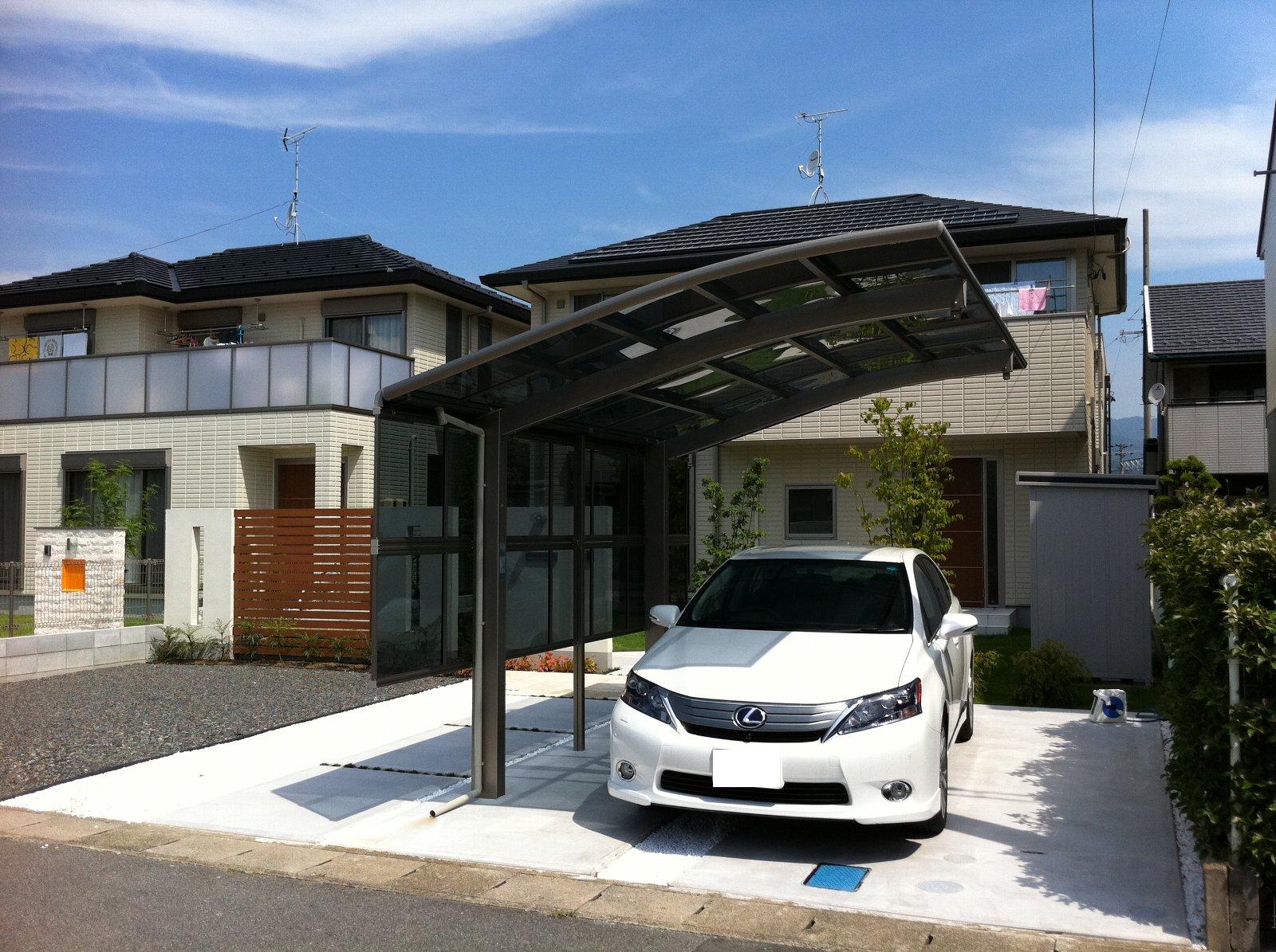 積雪タイプのカーポートには横からの雨雪も防げるように側面パネルを取付ました。