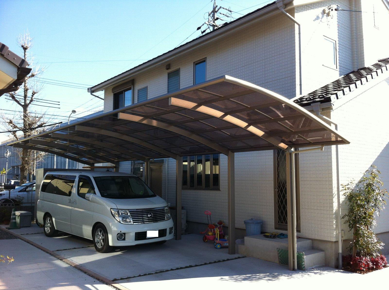 • 奥行連結カーポートに土間コンクリート目地にはタマリュウを入れました。
