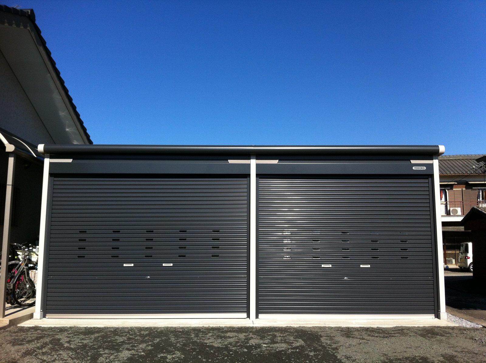 揖斐郡揖斐川町Y様邸で電動シャッタータイプのヨドガレージ工事をさせて頂きました。ありがとうございます。最初のお打合せでは屋根だけのカーポートタイプかガレージタイプにするか迷っておられましたが、雨風も完全に防げて防犯性も高いヨドガレージをお勧めしました。今回は電動シャッターを採用しましたので雨の帰宅時も車内からリモコンでシャッターの上げ下げが出来てとても便利と喜んで頂けました。