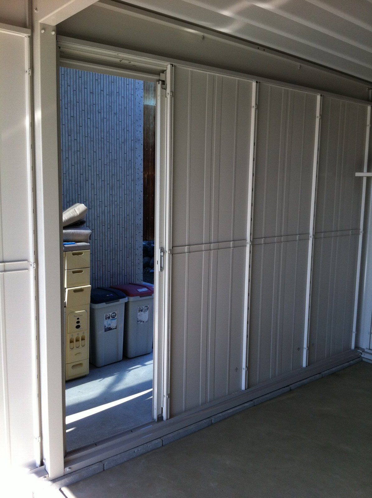 現場の敷地状況に合わせて、左側のシャッター間口が大きくなっています。