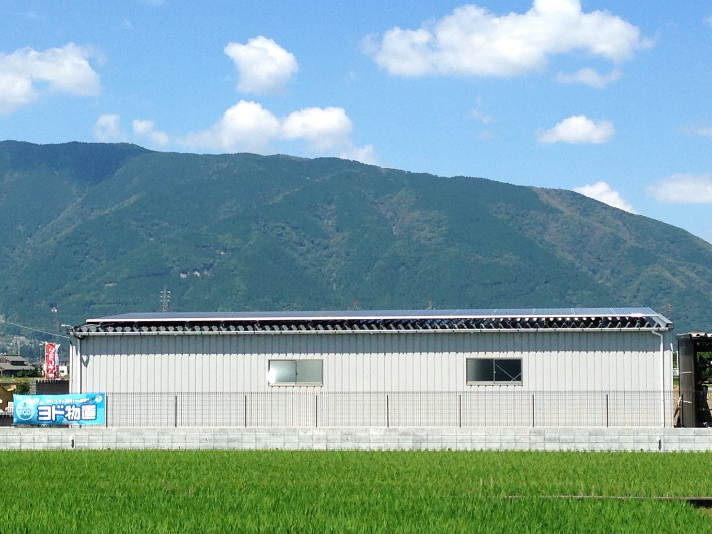 弊社の展示場にヨド倉庫を建て、その上には環境に優しく売電収入も得られるシャープ太陽光を設置しました。