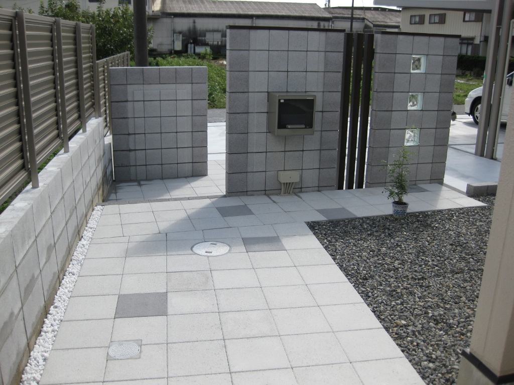 最後まで門柱ブロックの高さと位置関係をお悩みでしたが、何度もお打合せして決定したのでとても良いバランスになったと思います。
