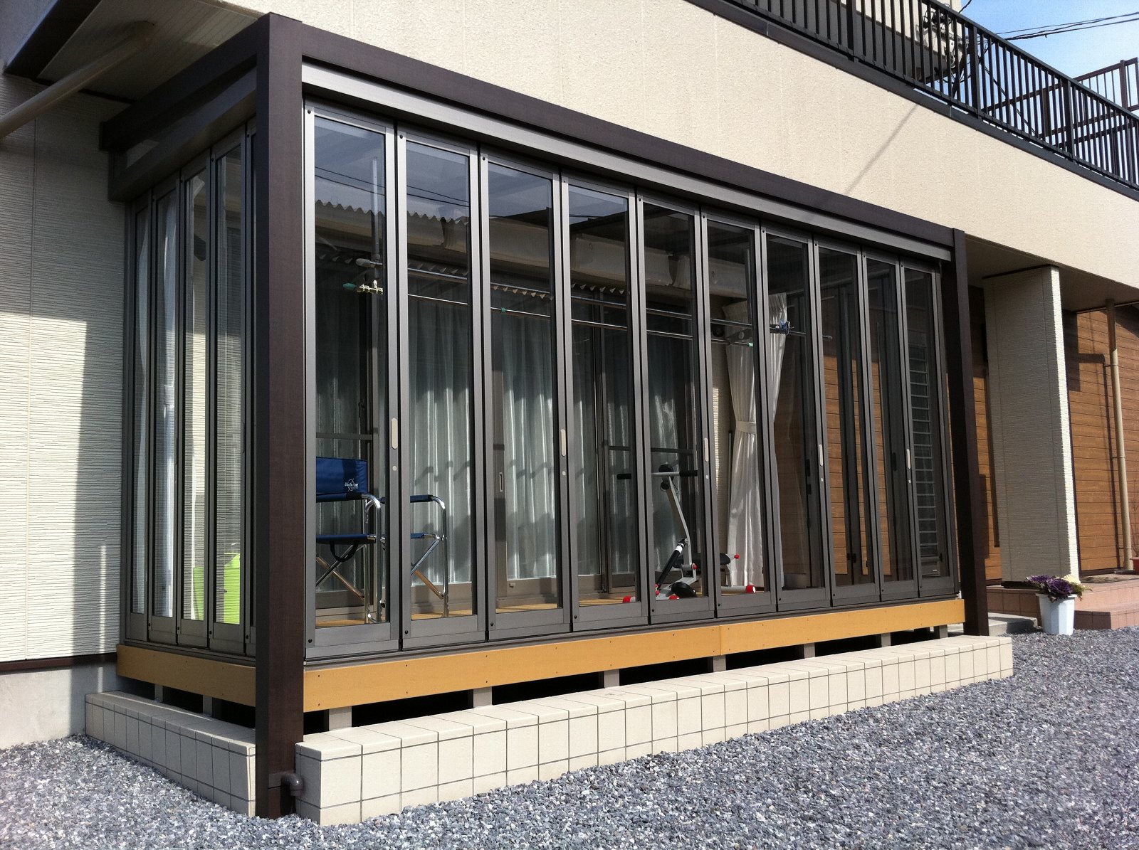 折戸パネルが自由に開き動く所が、とても便利で気に入っています。天気の良い日はフルオープンにして日光浴をしながら読書やエクササイズを気持良く楽しめます。また、雨が降りそうな日でも折戸パネルをクローズにしておけば、洗濯をしていても安心して出かけられます。