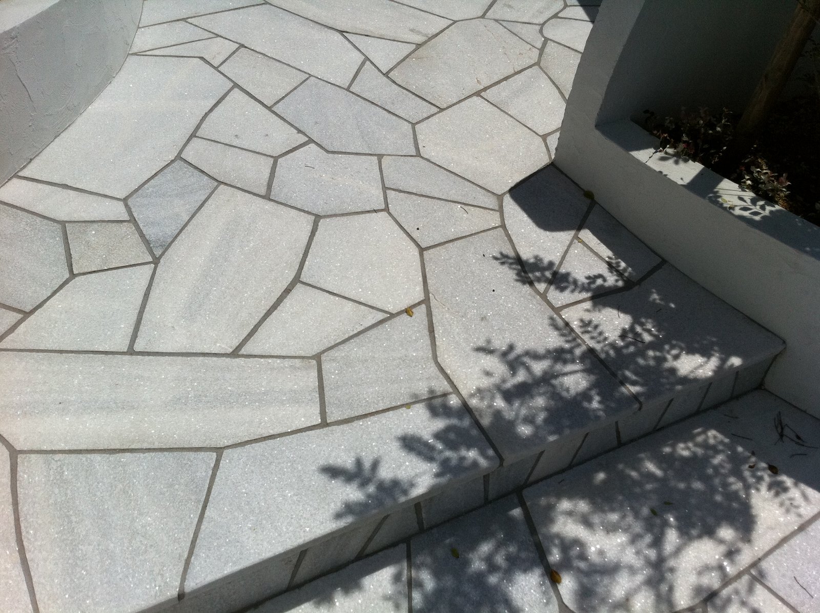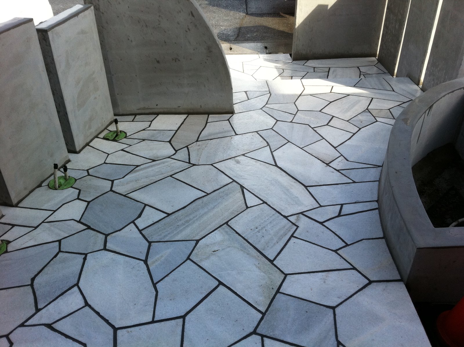 ホワイトパールの石にグレーの目地が綺麗に仕上がりました。