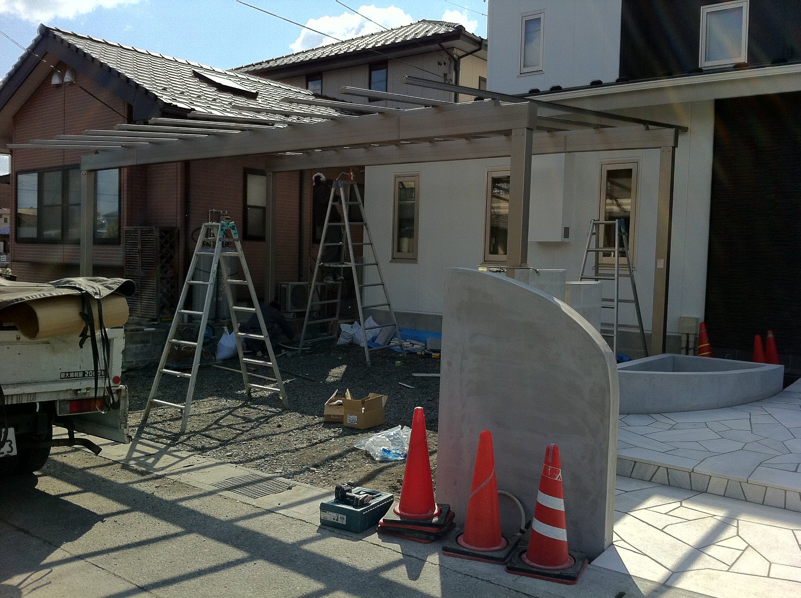 次はカーポート工事です。今回は敷地に合わせてカット加工し組み立てました。