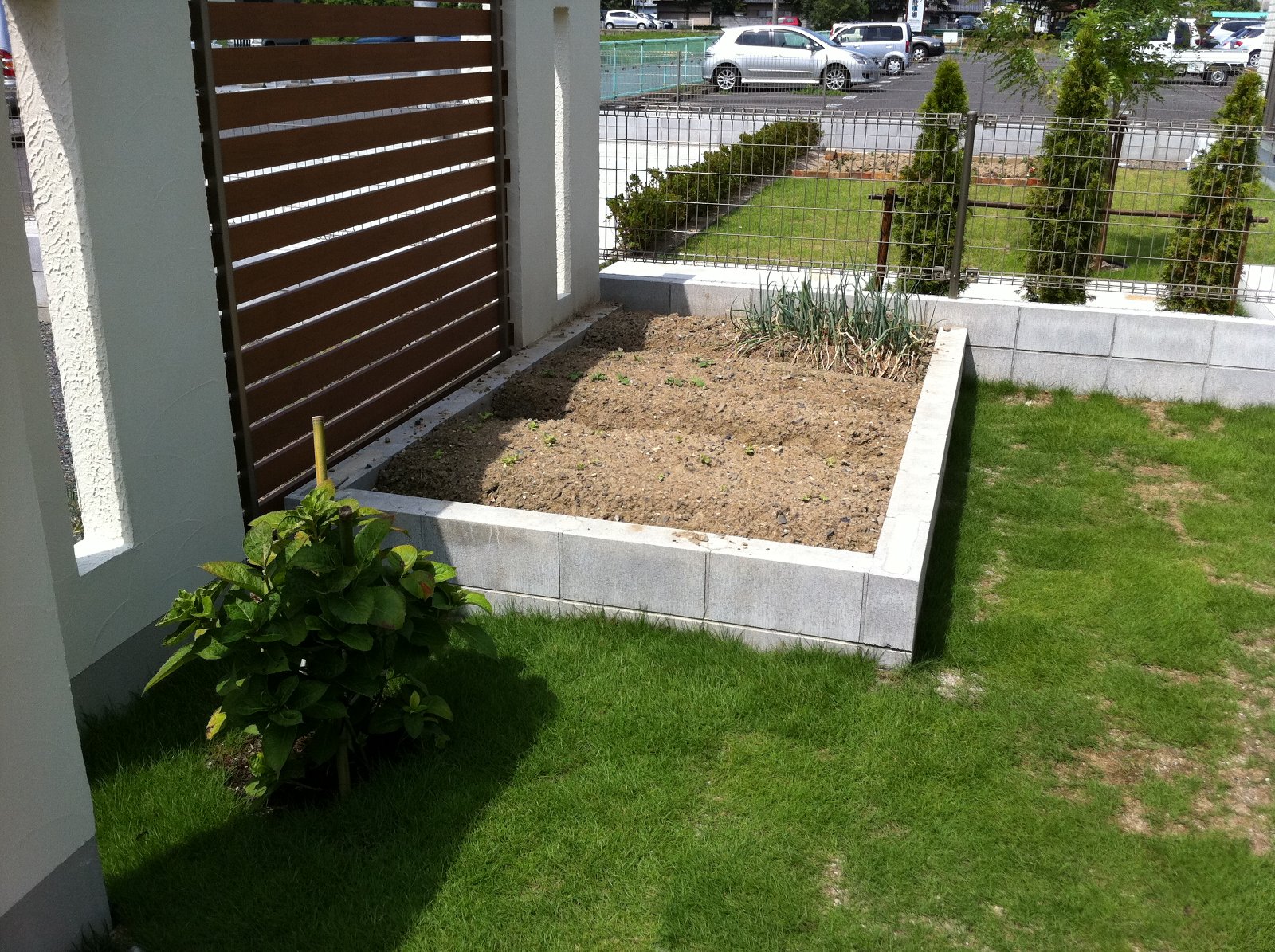 家庭菜園スペースも作りました。早速ネギが育っていますね。