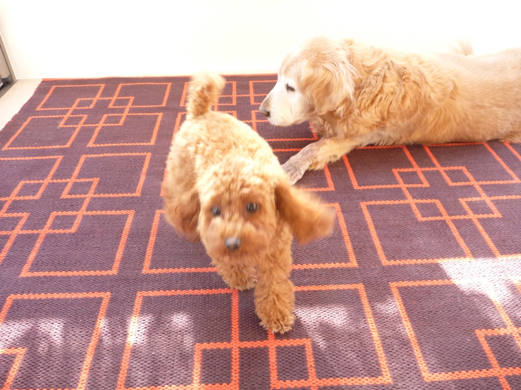 • ミッドテリアのラグマットの肌触りがお気に召したようで