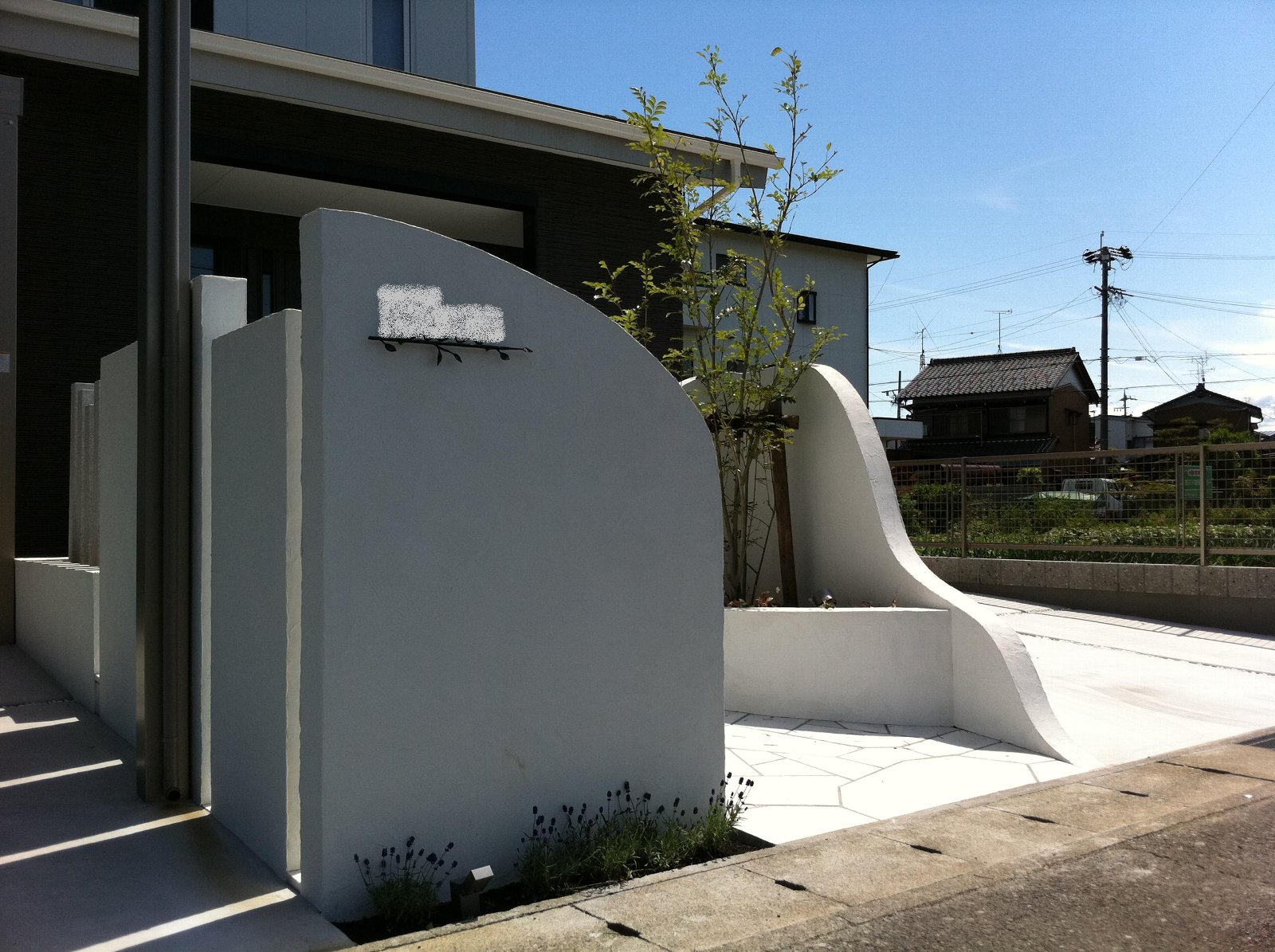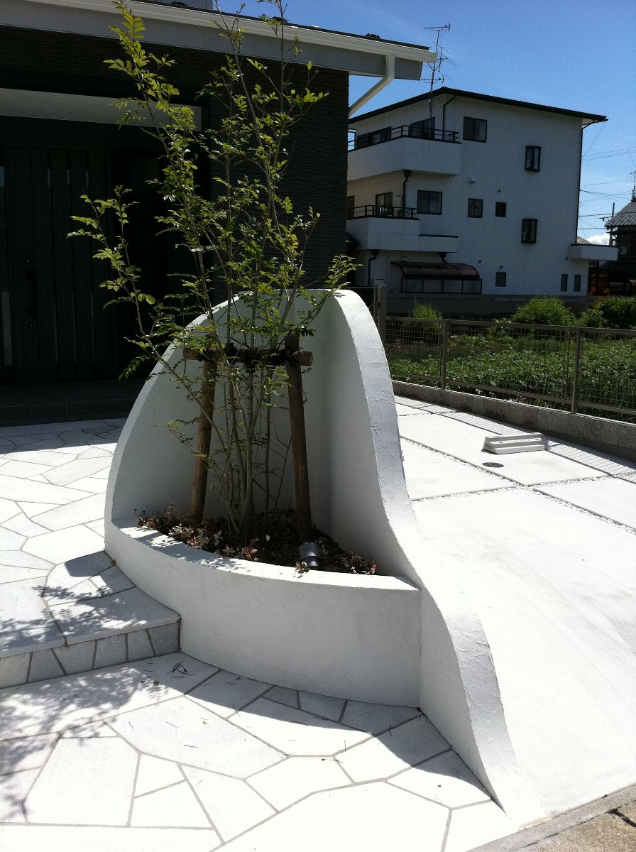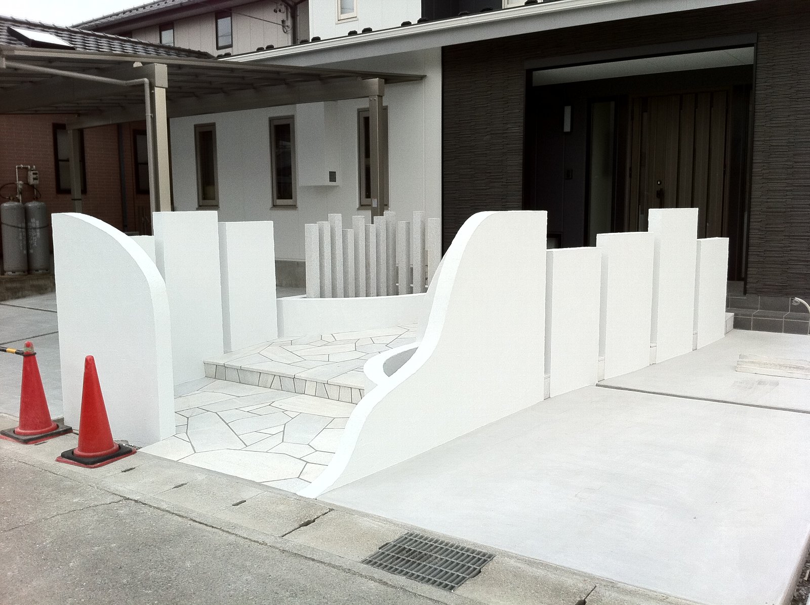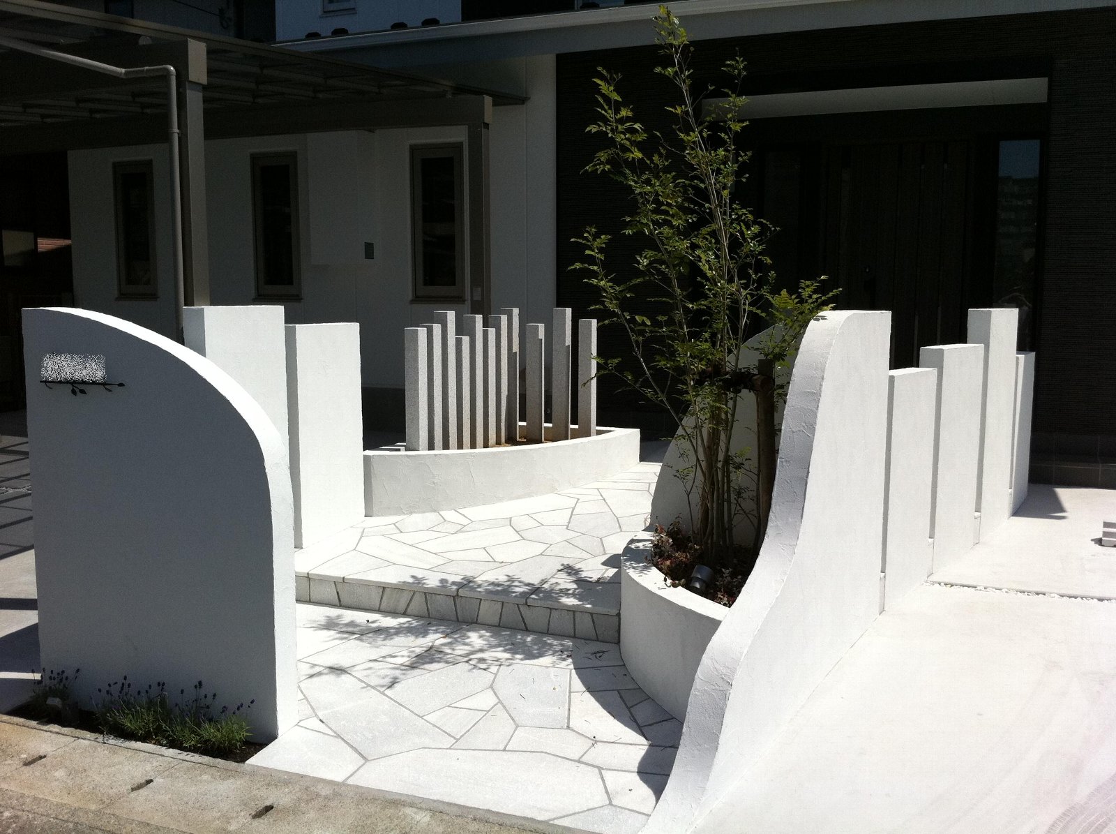 アプローチに拘りを持たれ何度も打合せさせて頂きました。お客様の想像する形と思いを表現して、モダンで複雑ながらもスッキリした外溝に仕上がりました。今回は工事工程もご紹介します。