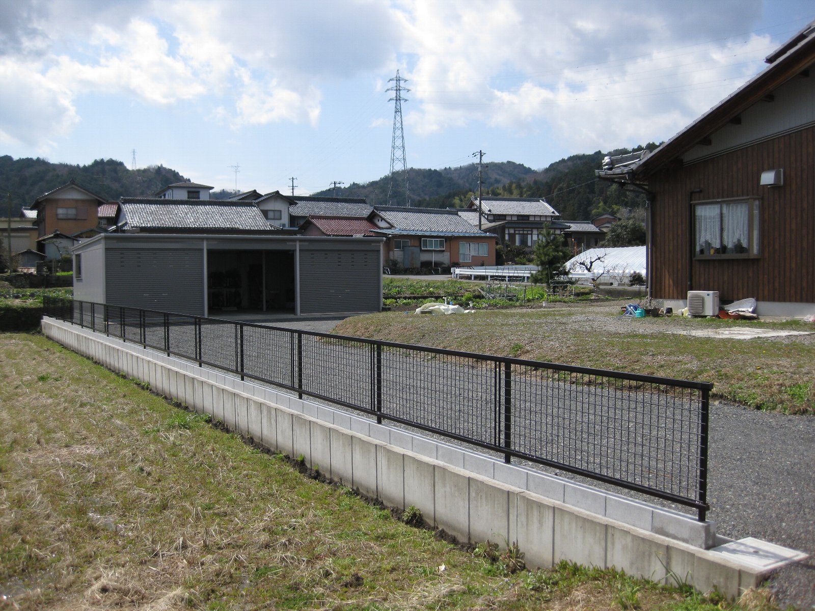お子様が隣の畑に落ちないようにブロック+フェンスを施工しました。
