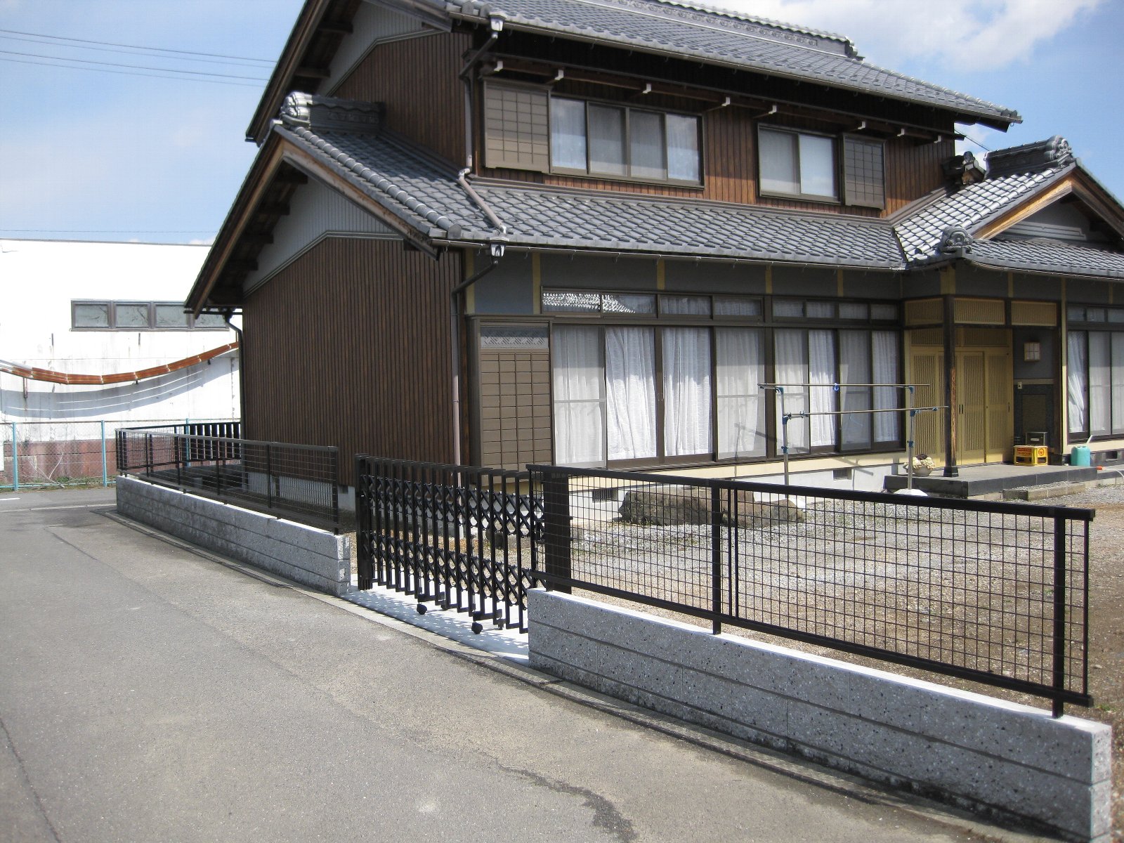東側は時々車の出入りをされるので、中間にアコーディオン門扉を取り付けました。