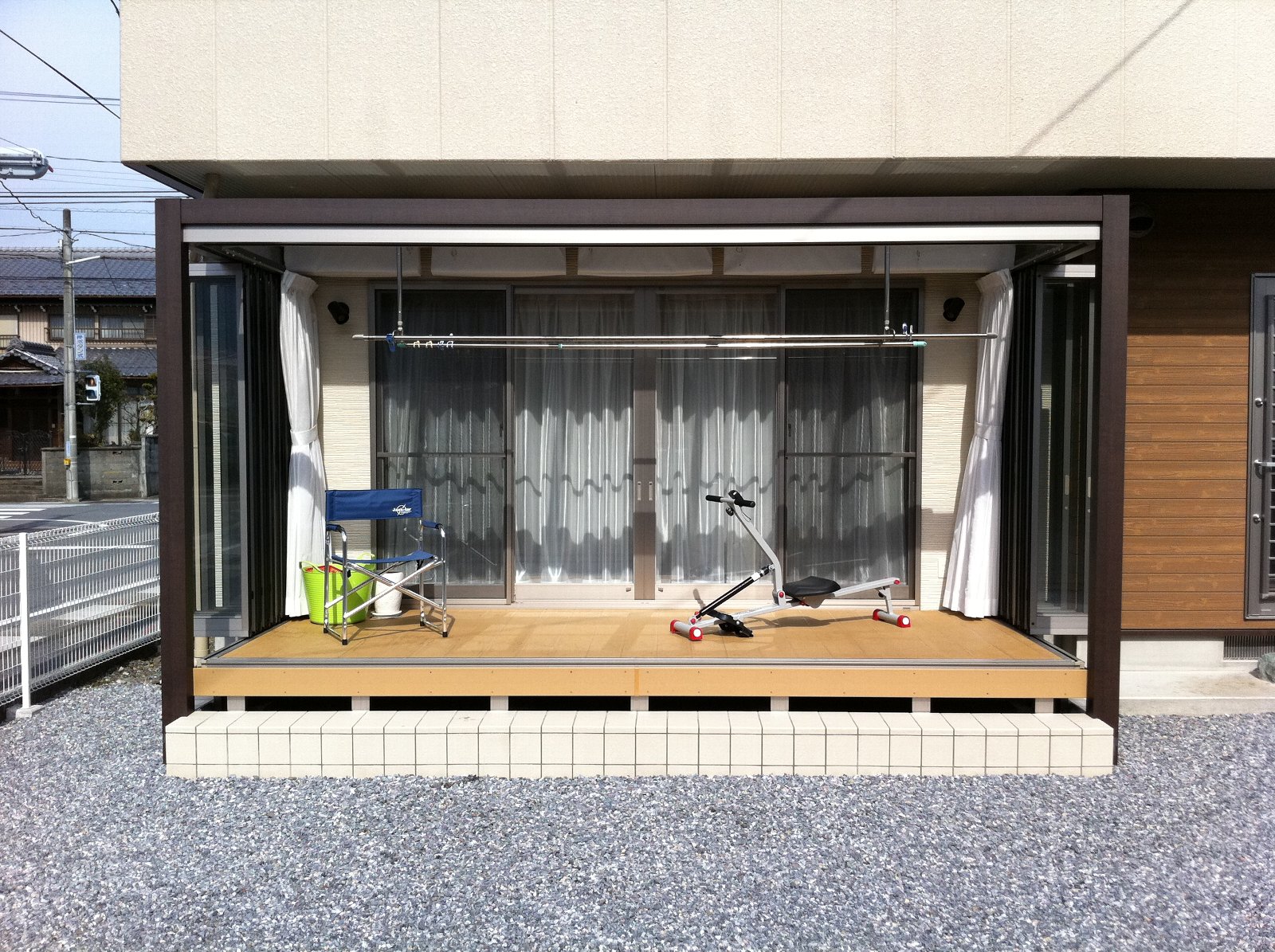折戸パネルが自由に開き動く所が、とても便利で気に入っています。天気の良い日はフルオープンにして日光浴をしながら読書やエクササイズを気持良く楽しめます。また、雨が降りそうな日でも折戸パネルをクローズにしておけば、洗濯をしていても安心して出かけられます。