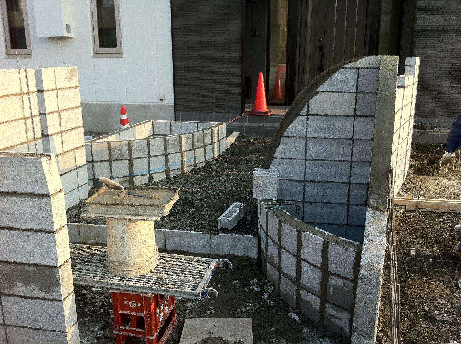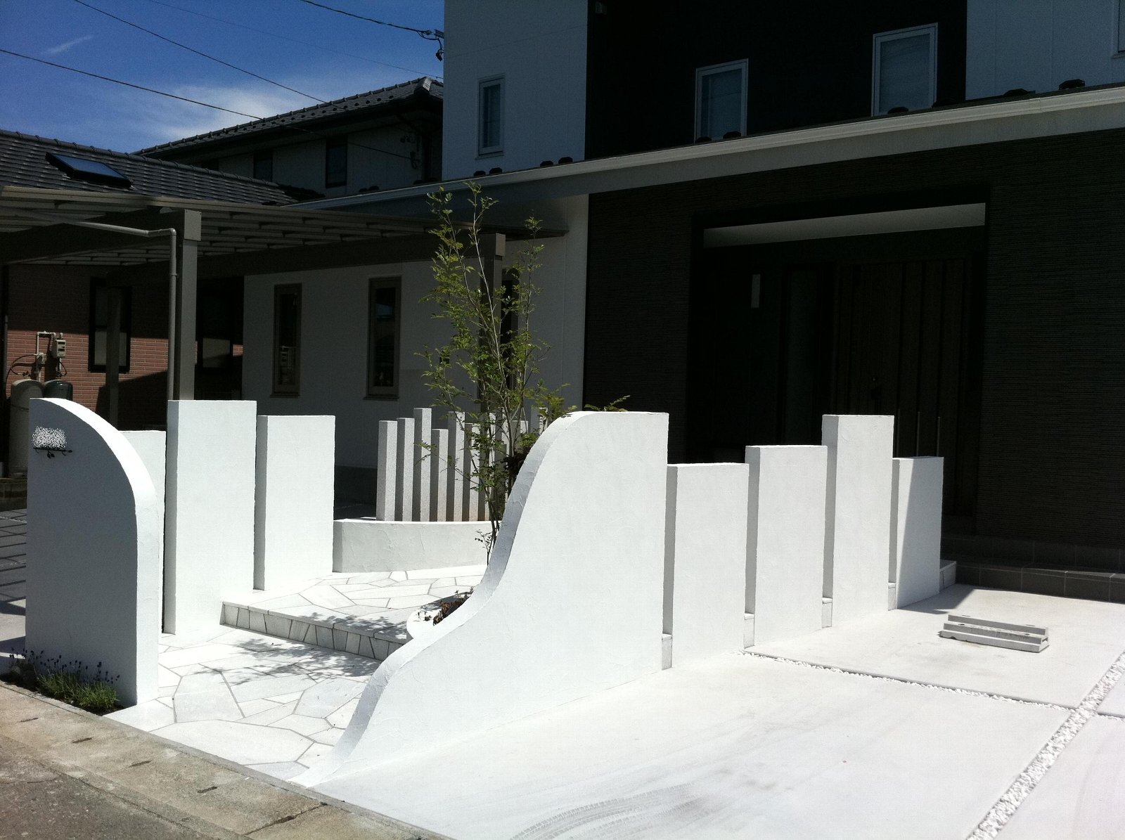 アプローチに拘りを持たれ何度も打合せさせて頂きました。お客様の想像する形と思いを表現して、モダンで複雑ながらもスッキリした外溝に仕上がりました。今回は工事工程もご紹介します。
