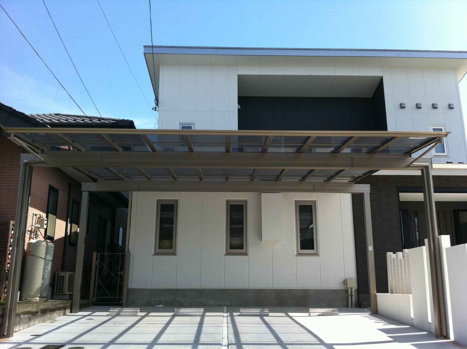 次はカーポート工事です。今回は敷地に合わせてカット加工し組み立てました。