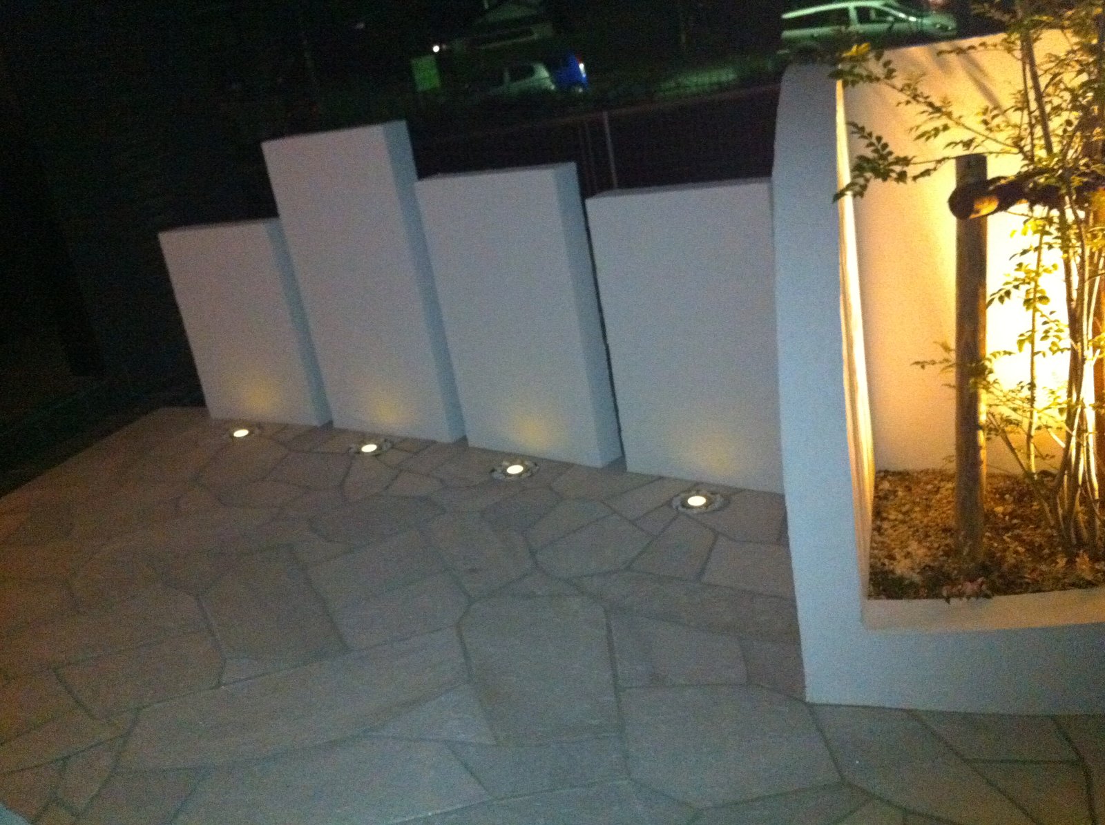 最後の仕上げに植栽工事と電気照明工事でいよいよ完成です。