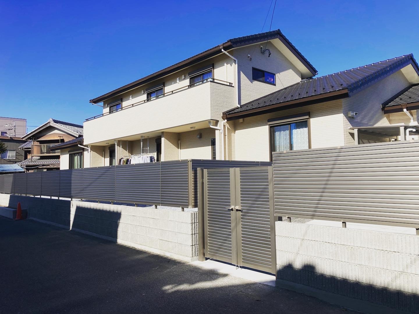 岐阜市 T様邸 三協アルミ 目隠しフェンス 門扉 洗濯干し場 スカイリード LIXIL アコーディオン門扉