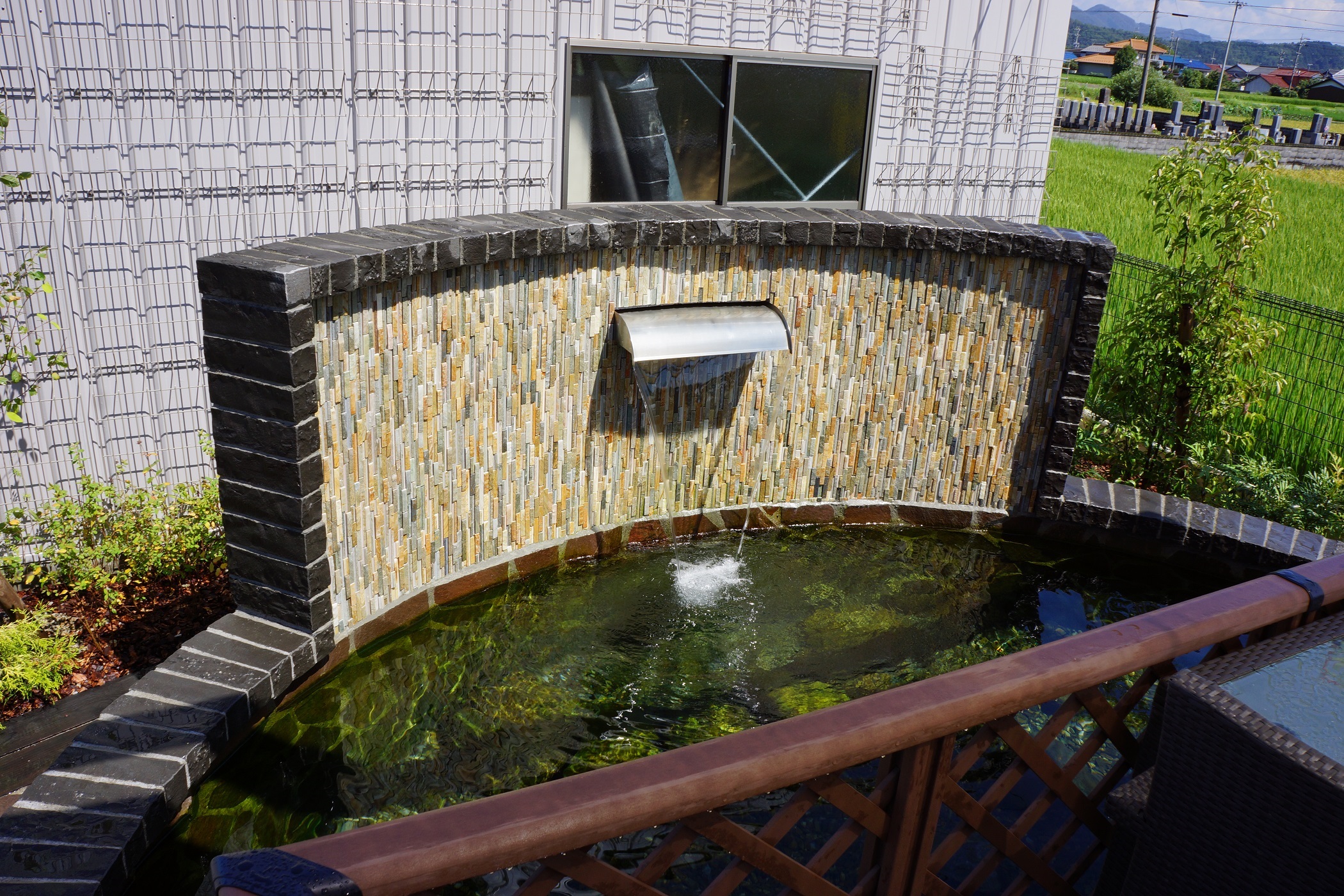 • 壁泉の仕上げはINAXの天然石ボーダー「エクセンシア」