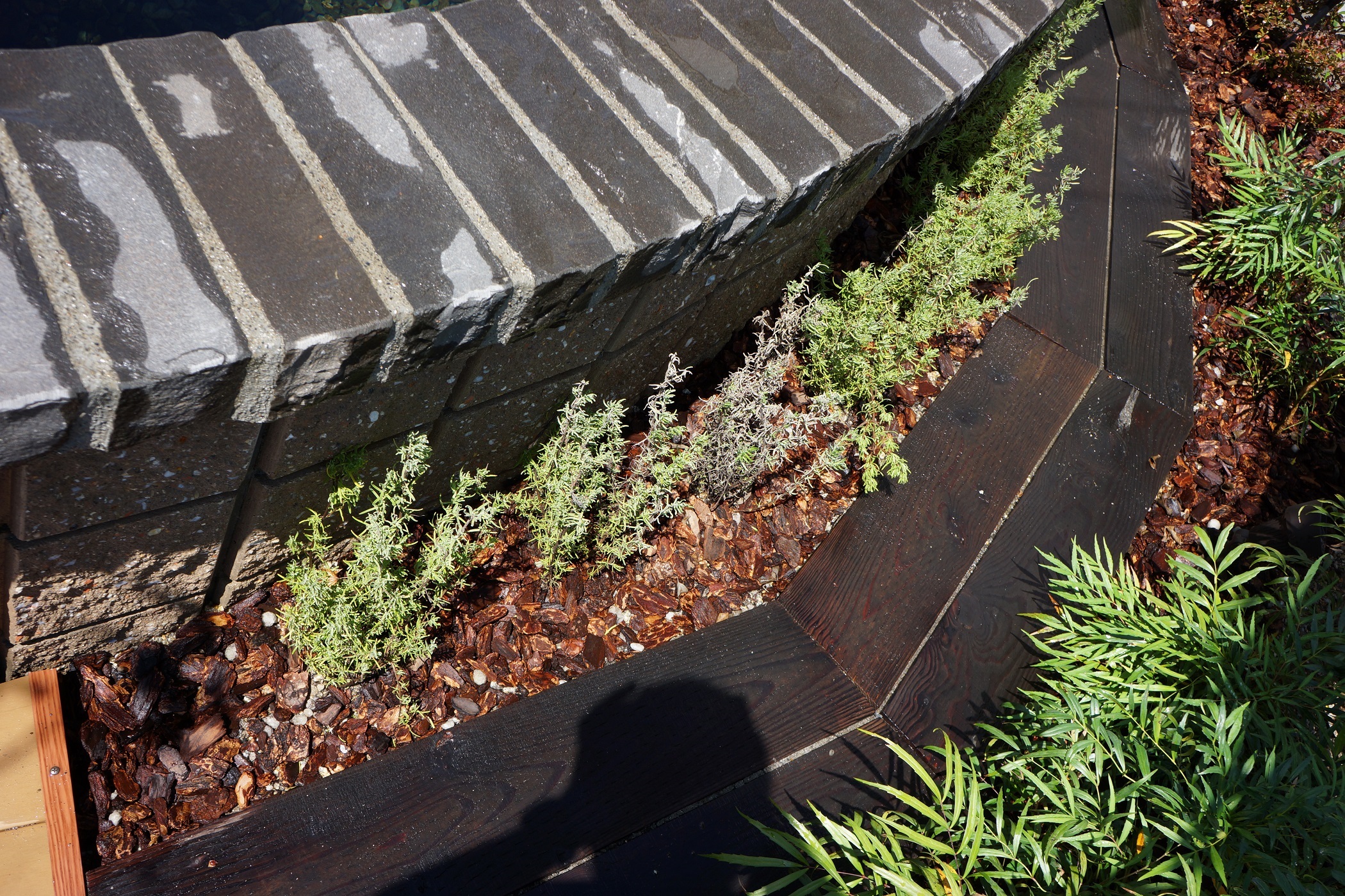 • 池の周りは枕木で散歩道を作り、植栽を見て回れるようにしました。