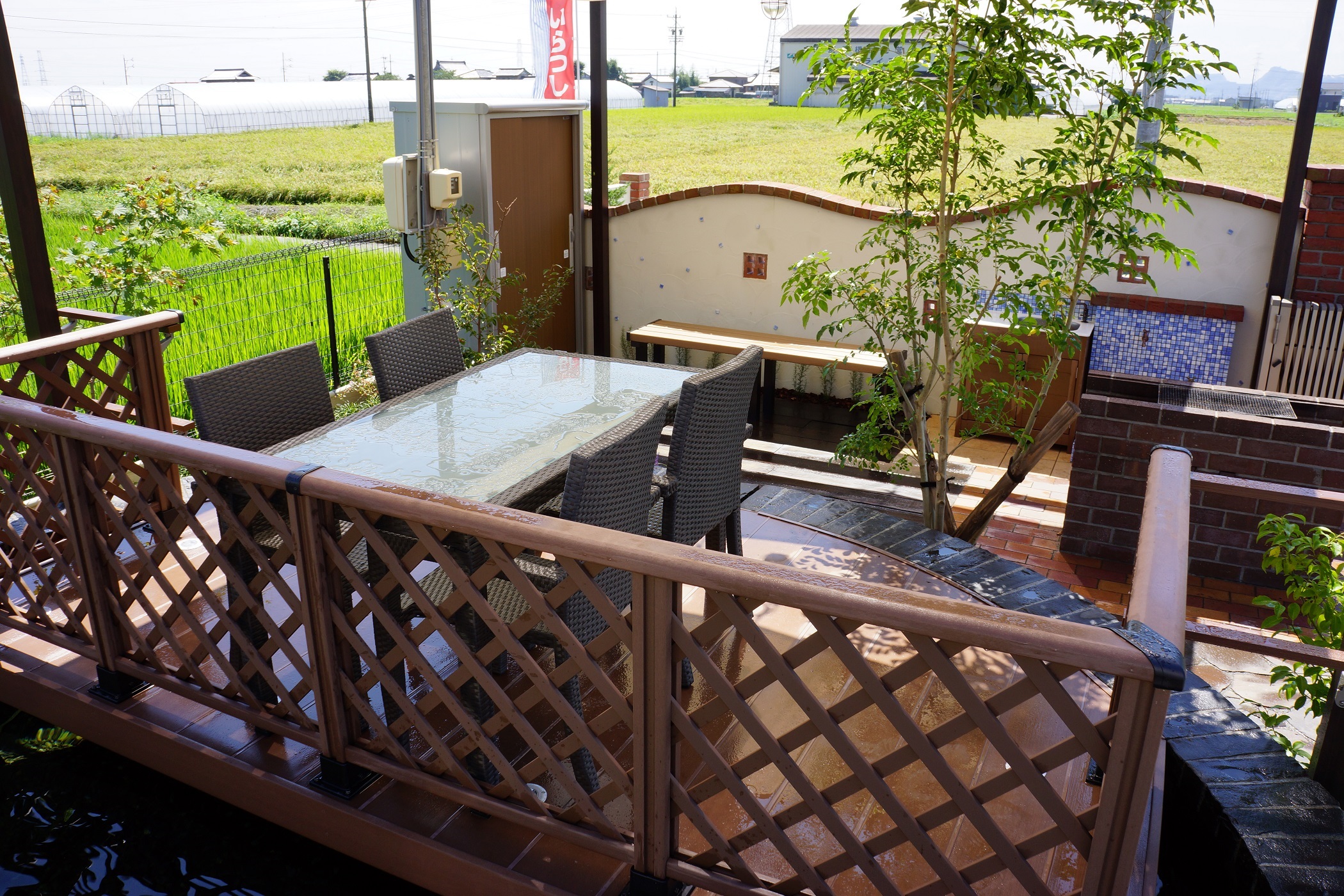デッキ上にはオンリーワンの人工ラタンで作られた椅子とテーブルを設置